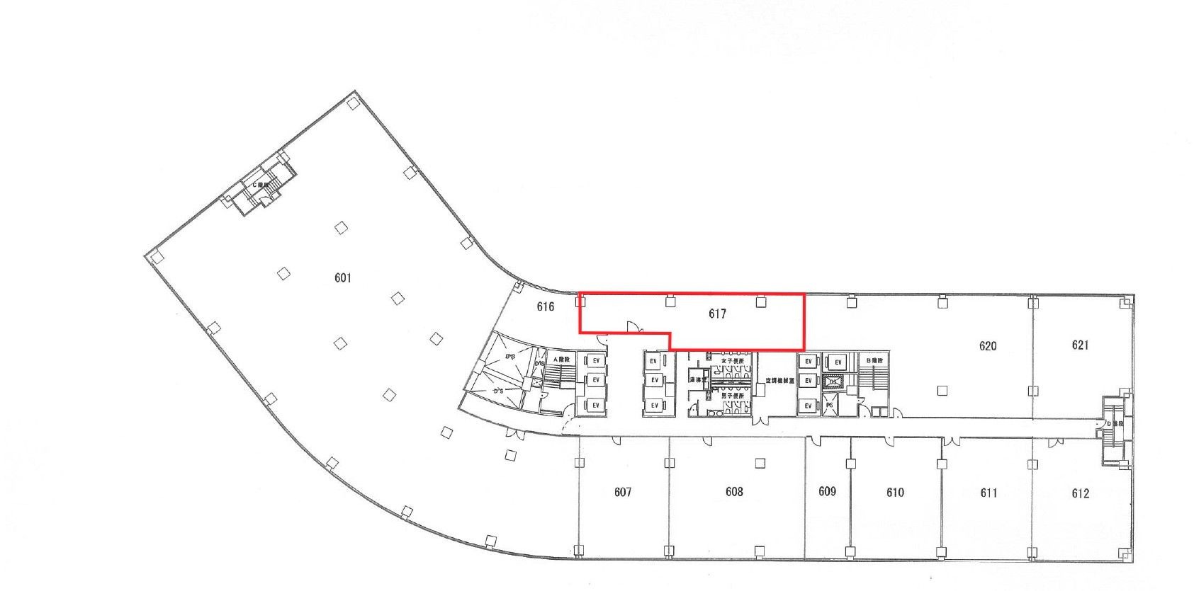 - 地上14階、地下3階建ての6階部分