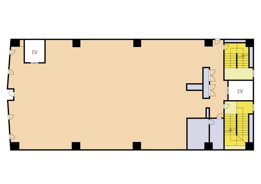 約105坪の広々とした空間は大型アミューズメント施設、スタジオなど広さを活かしたダイナミックなレイアウトが可能です。