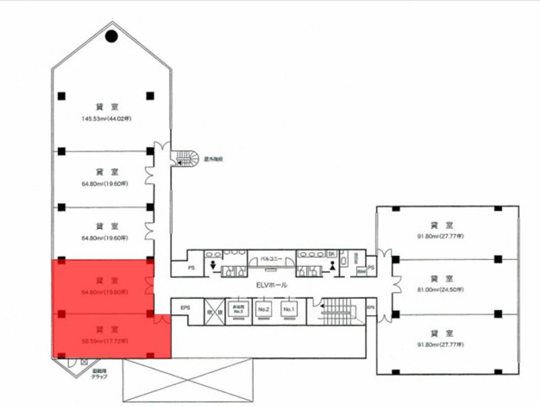 約37.33坪の広々とした執務スペースを確保でき、企業の顔となる拠点を構えたい事業者様に最適な一室です。