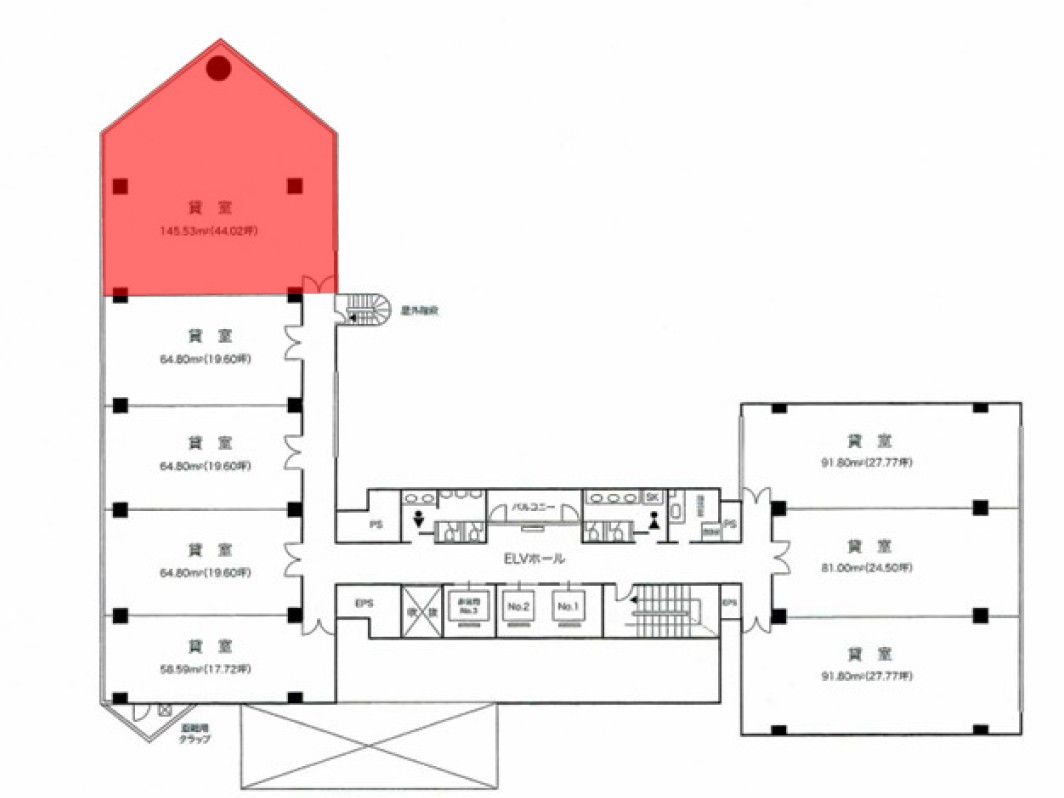約44坪の広々とした執務スペースを確保でき、企業の顔となる拠点を構えたい事業者様に最適な一室です。