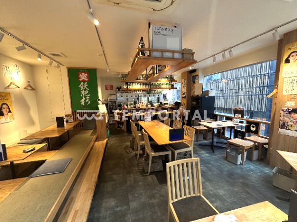 大きな窓から光が差し込むお洒落な空間は和食やダイニングバー、カフェなど上質なサービスを提供する飲食店に強く推奨します。