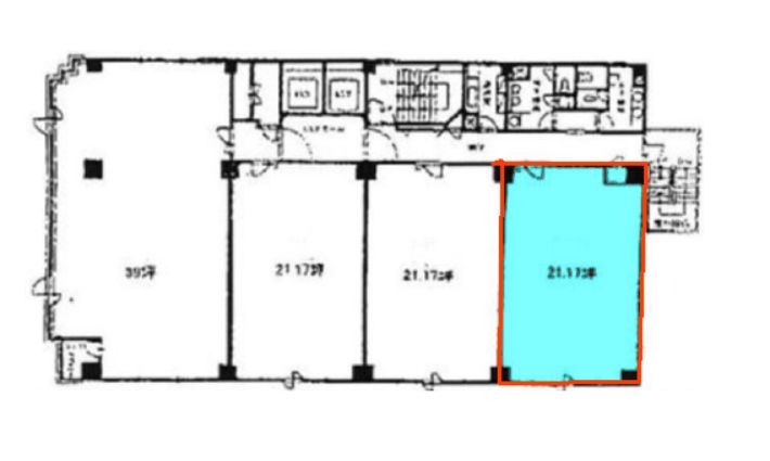 約21.17坪の空間は中規模な事務所や支店開設に最適なサイズ感です。