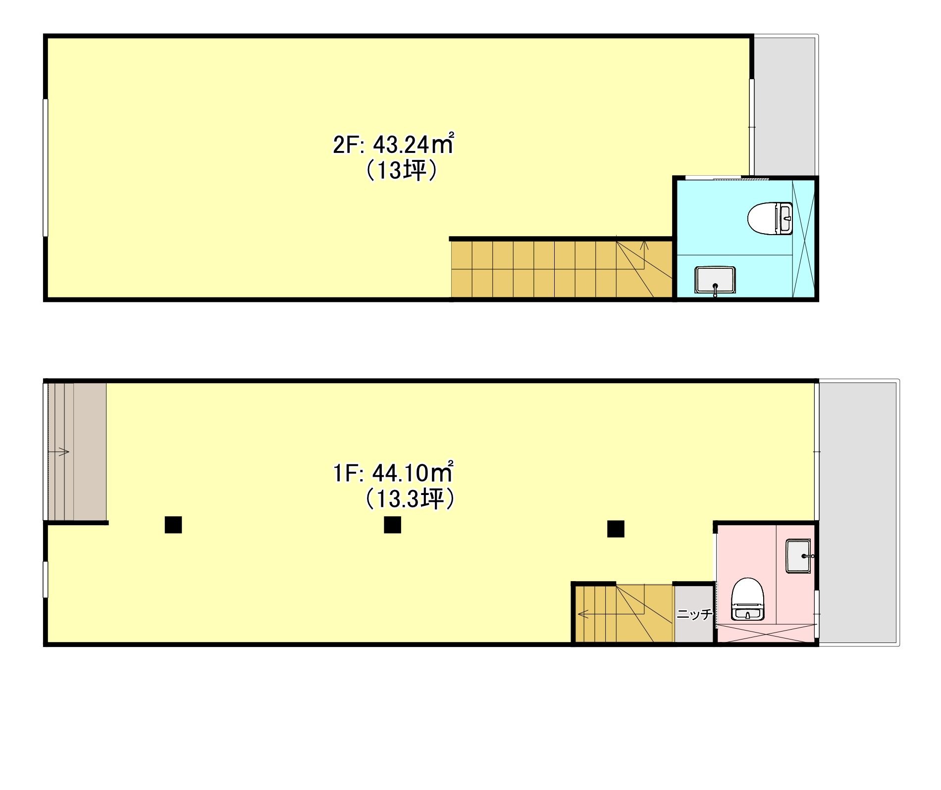 1階部分:44.1㎡、2階部分:43.24㎡